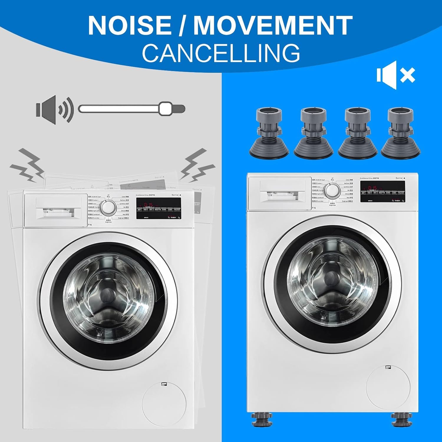 γAdjustable DesignγAnti Vibration Washing Machine Support Has A Perfect Adjustable Design So That You Can Increase The Height As Needed, Vibration Pads For Washer And Dryer Can Increase The Height Of The Appliance To Prevent Moisture And Make Cleaning Easier.