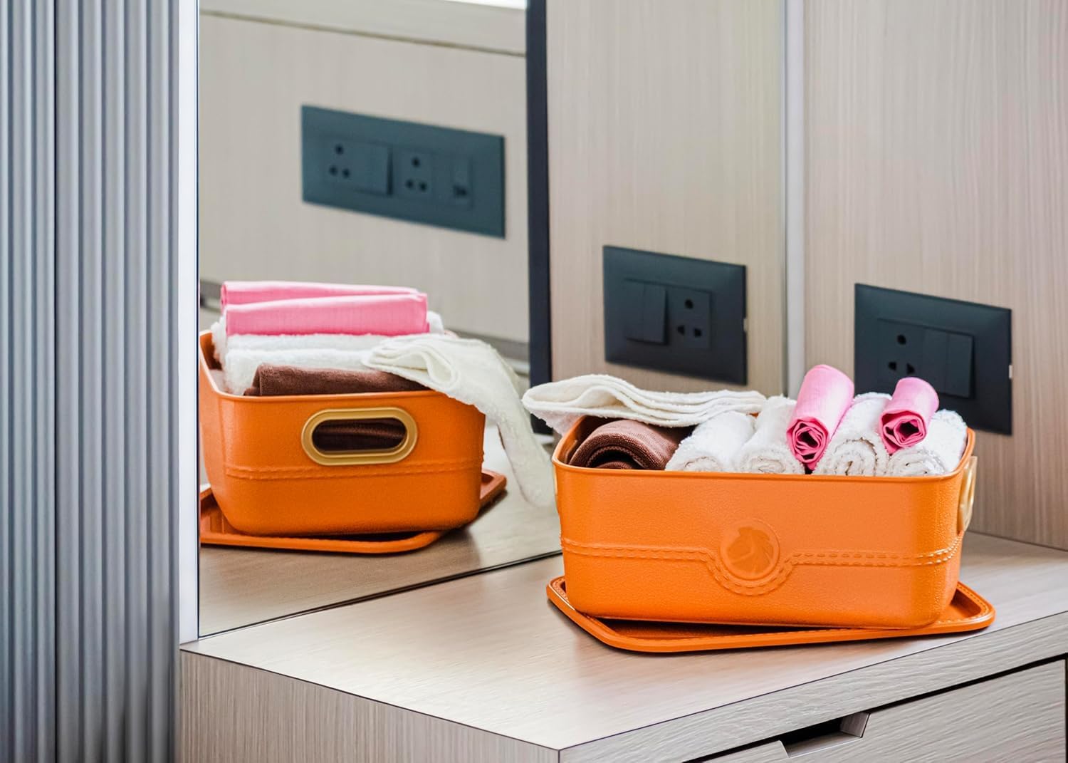 Designed with a premium leather-textured finish and elegant golden handles, these boxes combine functionality with a touch of luxury. Perfect for the living room, cupboard, office, or kitchen, these bins bring vibrant organization wherever needed.