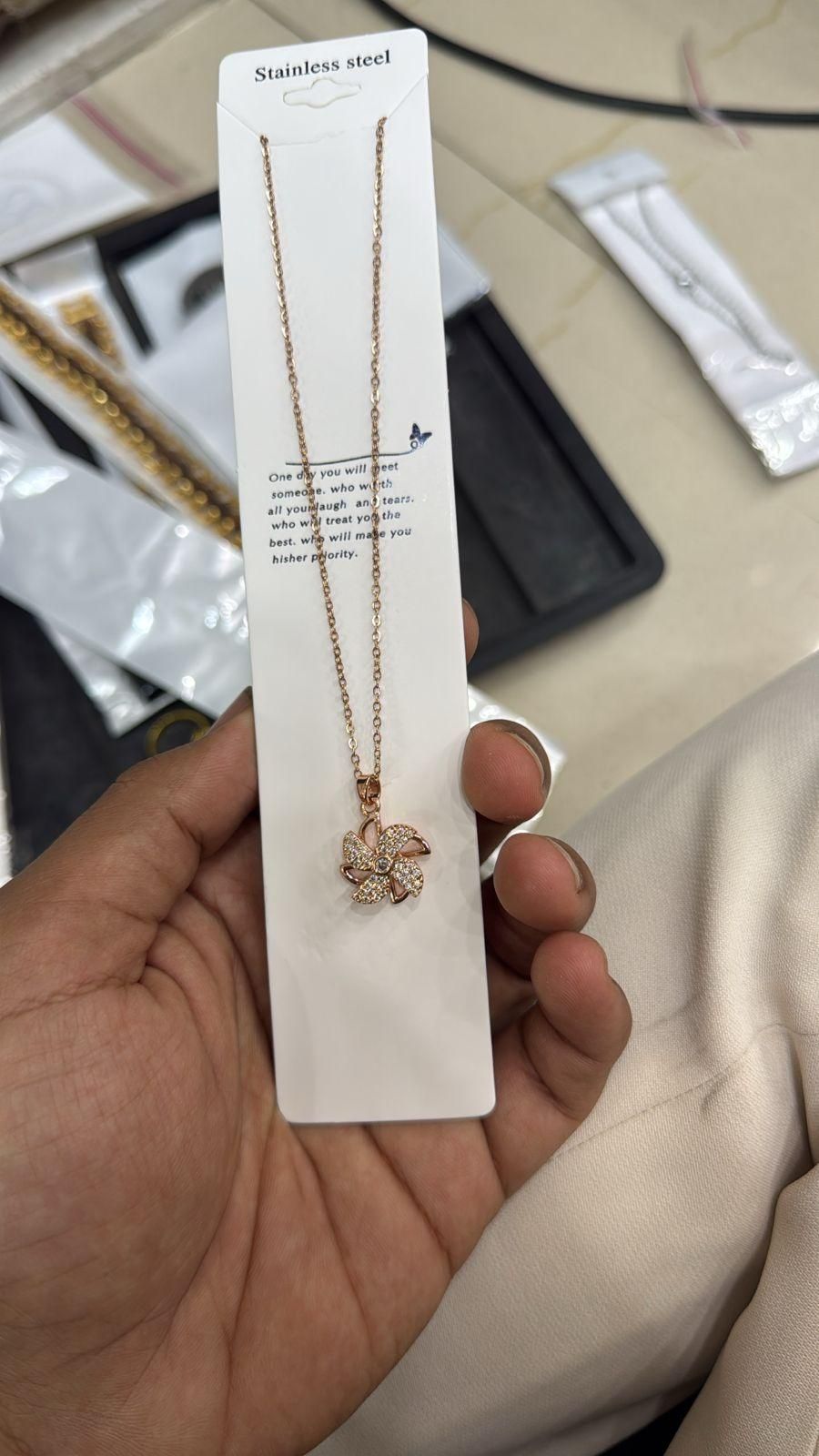 Product Name: Flower Pinwheel Rotating Necklace Package Contains: It has 1 Chains With Pendant Material: Alloy Size: Free Size Occasion: Casual Combo: Pack of 1 Ideal for: Women Weight: 150 gm